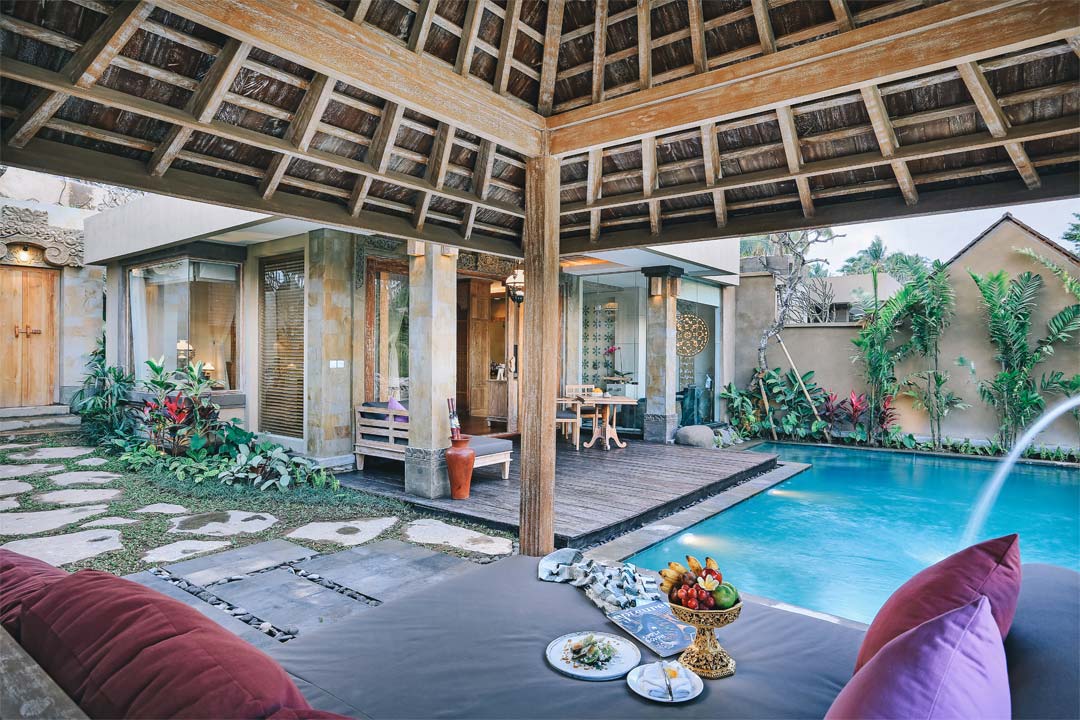 Warm and elegant ubud pool villa, the 120 sqm villa with private pool provides you with ample space to rest and recharge. Step onto the private veranda, listen to the music of nature and dip into its tranquility. The villa features mini bar, safe deposit box, LED cable TV, free wireless internet connection, IDD telephone, bathtub, hot & cold shower, and elegant bathroom amenities.